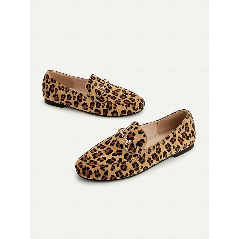 Highlights [Fabric] : Crafted from high-quality faux suede, these women's loafers offer a soft, luxurious feel with a durable texture that emulates the elegance of genuine materials. [Fit] : Featuring a comfortable slip-on design and a block heel, these loafers provide ease of wear and stability for a range of casual activities, ensuring a comfortable fit throughout your day. [Design Highlights] : The standout leopard print pattern delivers a bold yet sophisticated style, complemented by a decorative gold buckle on the front. The round toe shape and vintage, casual aesthetic add a touch of timeless charm to any outfit, embodying the season's trendy retro vibe. [Occasions] : Perfect for daily wear, these loafers are adaptable and stylish, ideal for casual walks, weekend outings, or adding a statement look to everyday wear during the spring and fall seasons. [Size Notice] : Available in a range of standard US sizes from 5.5 to 10.5, offering a size for every foot; these loafers are designed to fit true to your usual selection, ensuring comfort and style for your everyday adventures.