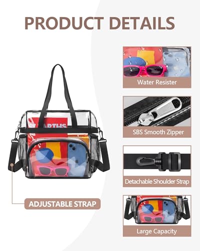 • 【Multi Purpose Clear Bag】 The clear bag can be handheld or crossbody, with adjustable and removable shoulder straps, easy to clean. Suitable for work, shopping, gym, party, sports, travel, festival, concert and other occasions.