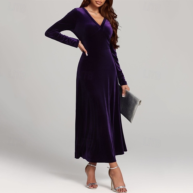 More information about Women's Midi Dress Velvet Dress Cocktail Dress Elegant Fashion Modern Outdoor Party Party Evening Wear Regular Fit Plain Long Sleeve V Neck Black Wine Blue Purple Spring Autumn