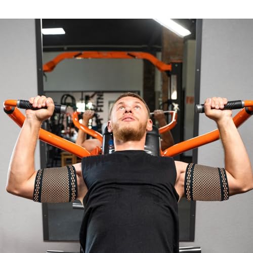 Copper Bicep Compression Sleeve 1 Pair,Bicep Tendonitis Brace,Triceps Sleeves for Upper Arm Support,Weightlifting,Fit for Men and Women (GOLD, Large) 7