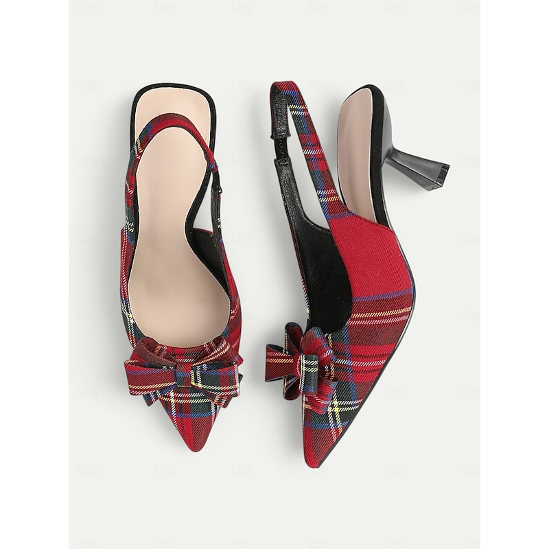 Women's Tartan Plaid Slingback Heels – Pointed Toe Kitten Heels with Bow Detail, Elegant Pumps for Parties & Office Wear 17