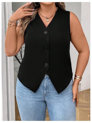 HOT ! Verdusa Women's Plus Size Button Front Sleeveless Jacket Vest Old Money V Neck Split Blazer Vests