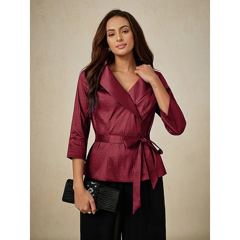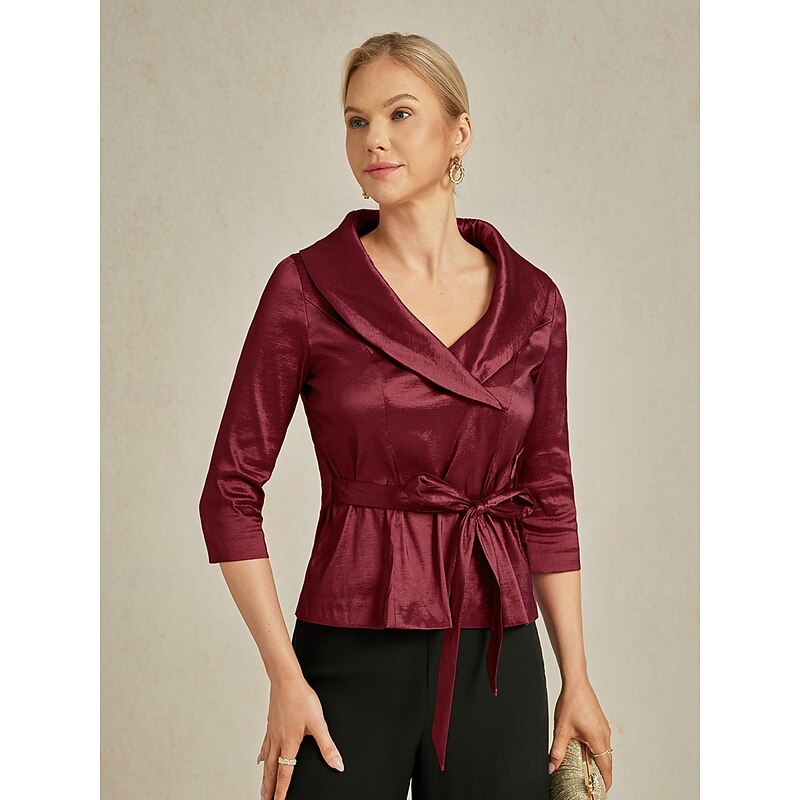 Why Choose Women's Blouse Evening Tops Elegant Metallic trendy 3/4 Length Sleeve V Neck Regular Tops Wedding Guest Evening Party Semi Formal Tie Front Wine Spring, Fall, Winter, Summer?