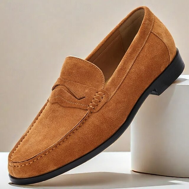 HOT ! Men's Tan Suede Leather Penny Loafers – Classic Slip-On Dress Shoes for Business, Weddings & Casual Wear