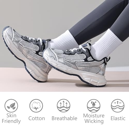 • CUSHIONED & ARCH SUPPORT: Thick cushioned sole reduce friction and disperse the impact in sports or daily activities. Arch Support release foot arch fatigue and keep socks in place