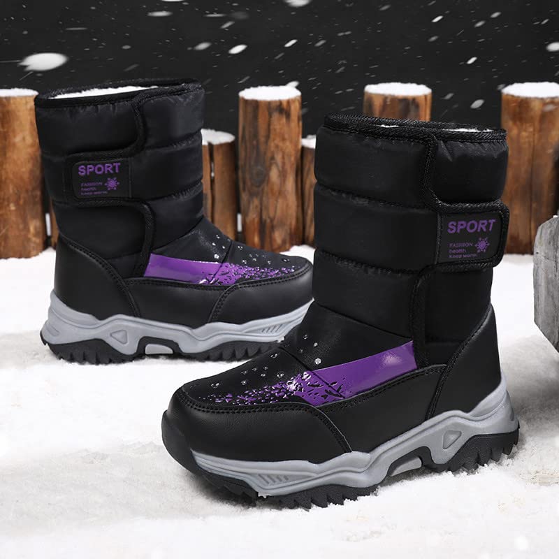 HOT ! Children's Shoes Camouflage Snow Boots Girls Boys Outdoor Boots Waterproof Non Slip Winter Plush Lined Snow Boots (Black, 8-9 Years)