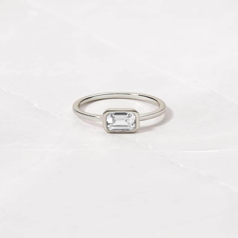 Baguette Moissanite Ring, Rectangle Bezel Set Ring, Bezel Set Engagement Rings, Emerald Cut RIng, Gift for Her, Dainty Rings, Minimalist Ring - GJH060 1