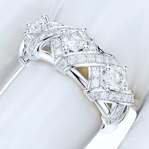 Why Choose Sterling Silver Luxury Vintage Crisscross Crown 3-Stone Simulated Round Brilliant Cut Diamond or Genuine Moissanite Ring For Women Promise Ring Wedding Band?