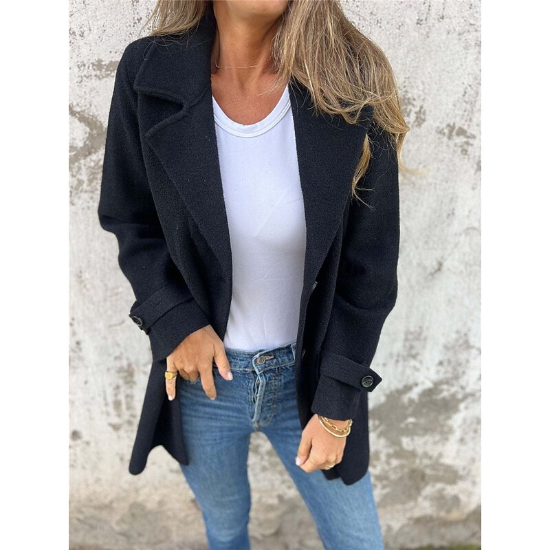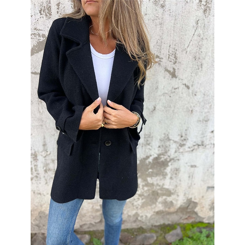 More information about Women's Winter Coat Outdoor Street Daily Wear Fall Winter Regular Coat Regular Fit Thermal Warm Breathable Stylish Casual Jacket Long Sleeve Plain with Pockets Black Khaki Apricot
