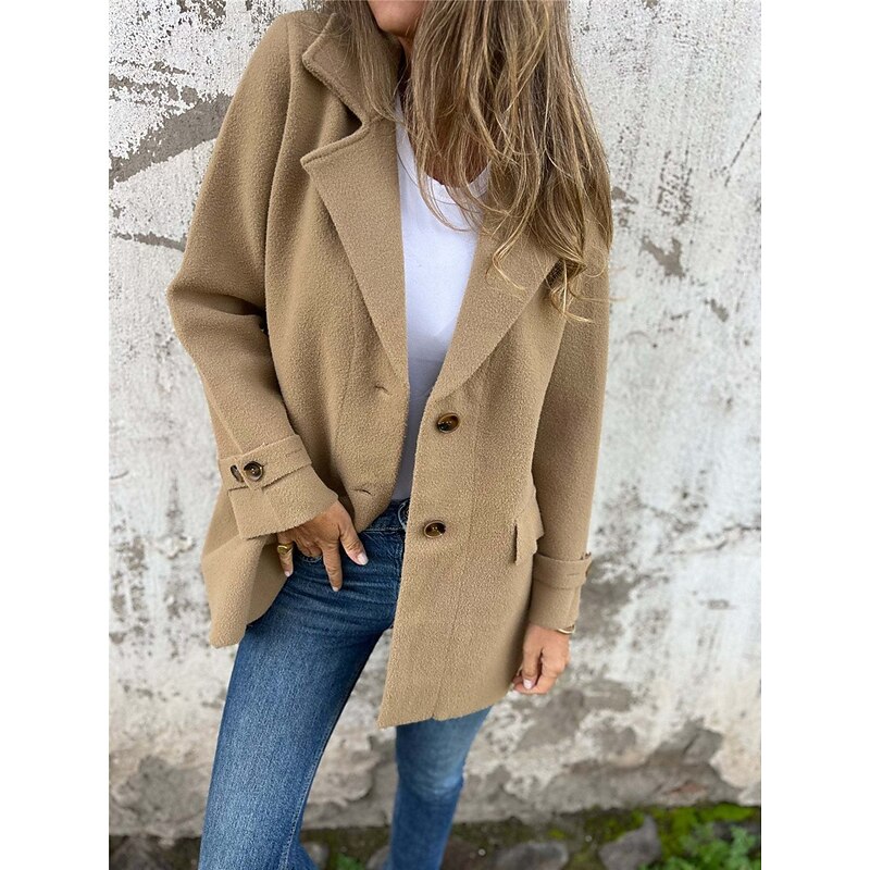 Women's Winter Coat Outdoor Street Daily Wear Fall Winter Regular Coat Regular Fit Thermal Warm Breathable Stylish Casual Jacket Long Sleeve Plain with Pockets Black Khaki Apricot