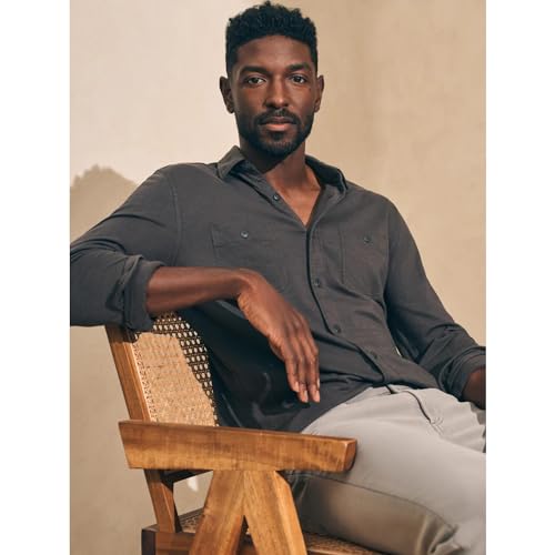 HOT ! Faherty Men's Sunwashed Knit Shirt (Double Pocket)- Washed Black Extra Large (XL)