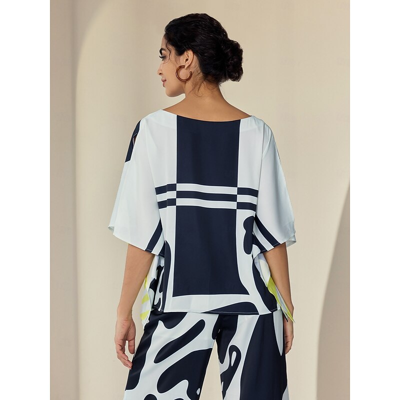 Women's Satin Silk Shirt Color Combo Casual Daily Magyar Sleeve Black Ladies Flowy Graphic Half-Sleeve Casual Daily Bateau Spring &  Fall Cross-Seasons 11