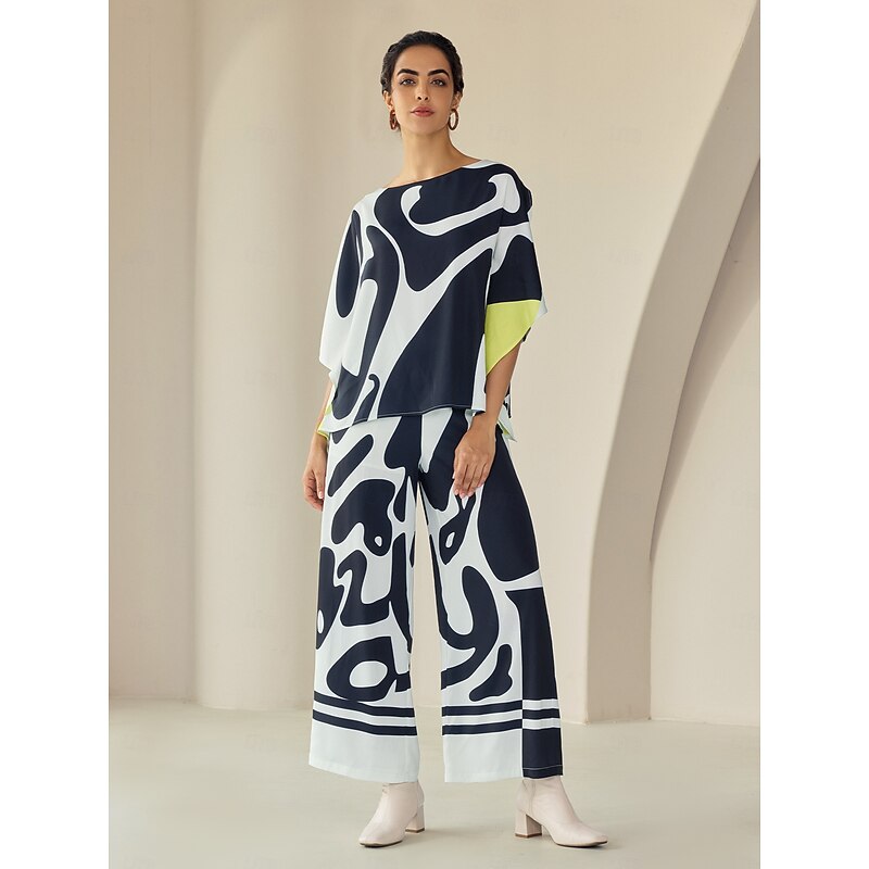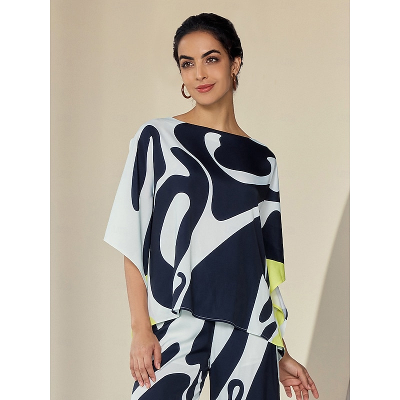 Women's Satin Silk Shirt Color Combo Casual Daily Magyar Sleeve Black Ladies Flowy Graphic Half-Sleeve Casual Daily Bateau Spring &  Fall Cross-Seasons 2