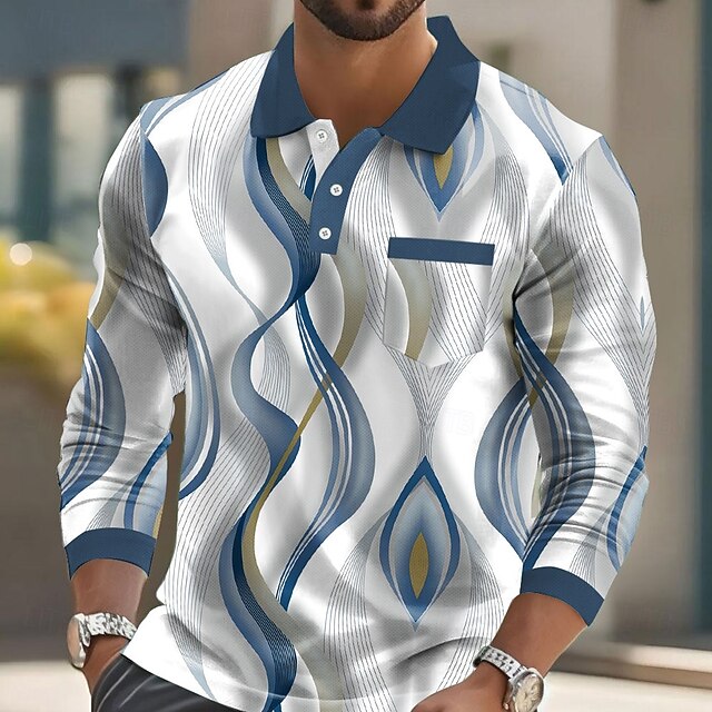 This Men's Geometric Polo Long Sleeve Polo Shirts Collared Shirts Casual Business Casual Business Athleisure Daily Wear Buttons Pocket 3D Print Spring Fall Winter Blue Purple Green combines elegant design with practical functionality. Every detail has been carefully considered to ensure you get the foremost possible experience. The finest construction means this product will serve you well for years to come.