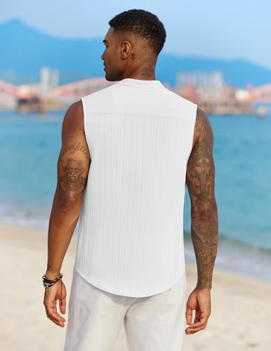 COOFANDY Mens Sleeveless Summer Shirts Beach Tank Tops Button Up Textured Tank Shirt for Vacation 6