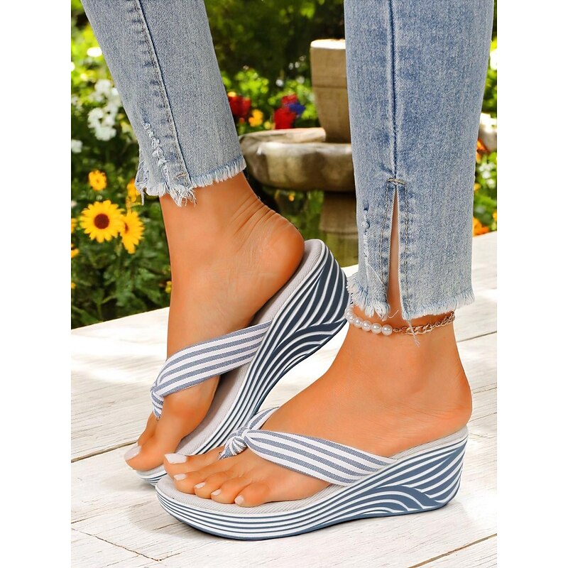 HOT ! Women's Striped Wedge Flip-Flop Sandals – Casual Summer Beach Shoes, Ideal for Poolside Walks, Seaside Vacations, Garden Picnics & Resort Wear