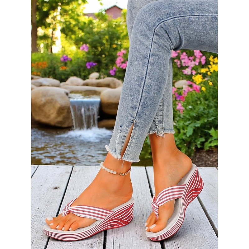 $19.99 - Women's Striped Wedge Flip-Flop Sandals – Casual Summer Beach Shoes, Ideal for Poolside Walks, Seaside Vacations, Garden Picnics & Resort Wear 2025. Shop for cheap Casual Sandals online? Buy at lightinthebox.com on sale today!