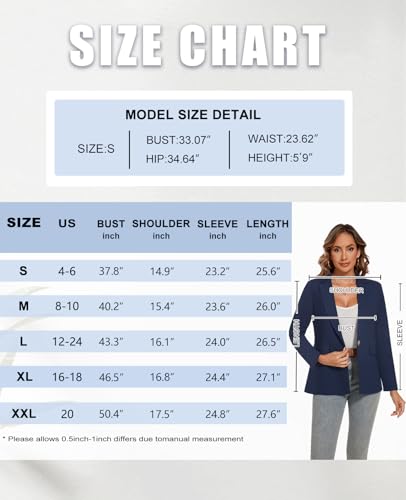 Fabric type: 40% Cotton, 40% Linen, 20% PolyesterCare instructions: Machine Wash & Hand WashOrigin: Imported【Material】:This blazers for women is made of premium linen fabric. The soft and lightweight linen fabric makes it more breathable and comfortable to wear, provides you pleasant wearing experience while exuding confidence and charm.【Linen Blazer】:Womens linen blazer comes with button front design, shows basic timeless classic and trendy style. The notched lapel collar adds a sense of elegance. Long sleeve blazer jacket has some basic solid color to choose from, easy to match to create contemporary looks, highlights your charming femininity, you can stock up on different shades to keep on rotation.【Feature】:Long sleeve blazer ,Open front linen blazer suit jackets with one button closure, Notched lapel collar, Front Lined, Work office suit jackets, Solid color, Blazer jacket suit for women work casual. Two functional flap pockets, perfectly carrying some necessity, or nailing a chic look.【Matching】:Women's blazers & suit jackets can be paired with a variety of outfits,such as jeans,long skirts,and dresses. If you want to create a formal look,you can pair it with trousers and high heels,which will enhance your professional qualities. If you want to create a more casual look,you can pair it with jeans and flats,which will create a more stylish and relaxed vibe.【Occasion】:Classic notch lapel blazers for women is great for street look, business outfit, work office style and and other special events, daily life, leisure time, holiday, vacation and so on. Basic linen blazer jackets are perfect for womens, ladies, girls or juniors for all year around whatever you are in spring, summer, fall, autumn or winter. Perfect for everyday use. superior materials and excellent craftsmanship ensure long-lasting durability.