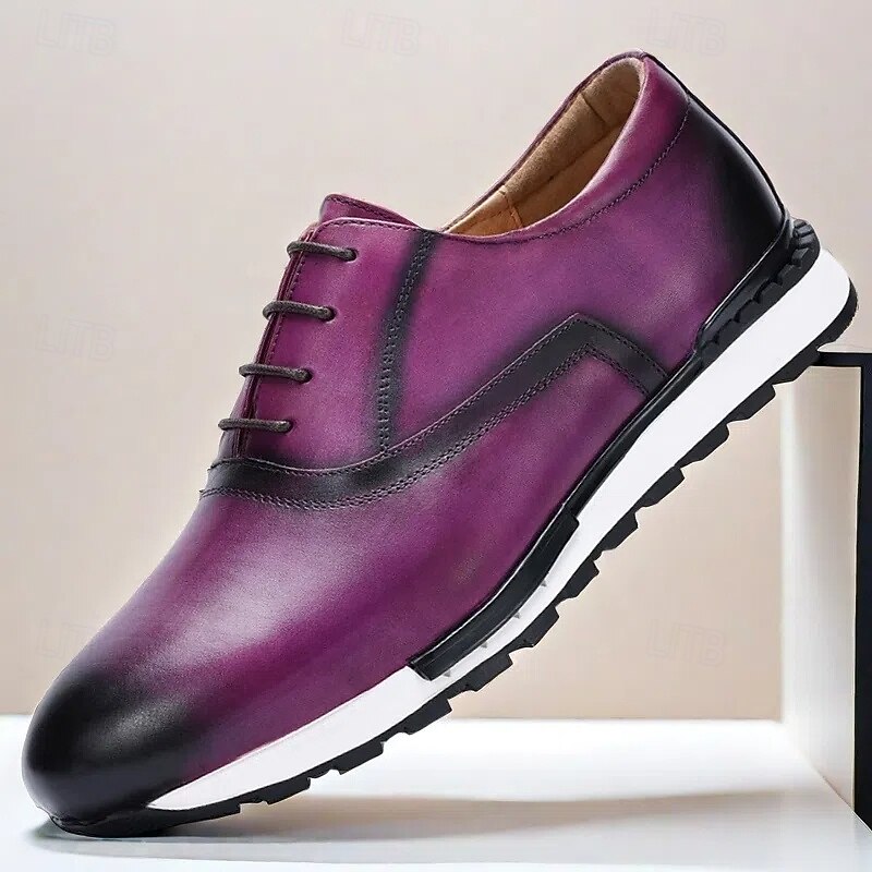 HOT ! Purple Leather Sneakers with Lace-Up Closure for Men | Versatile for Casual and Business Casual