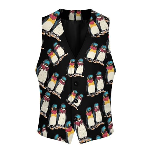 Ski And Snowboard Penguins Suit Vest for Men Waistcoat Dressy V Neck Button Down Sleeveless Business Jacket Coat 2