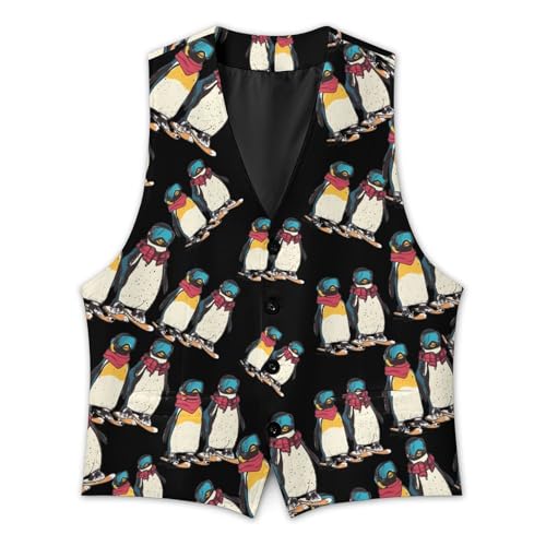 Ski And Snowboard Penguins Suit Vest for Men Waistcoat Dressy V Neck Button Down Sleeveless Business Jacket Coat 6