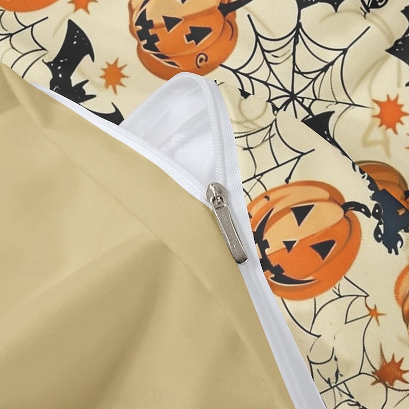 Halloween Beige Duvet Cover Set - Adorable Pumpkin Print to Decorate Your Bedroom - Includes Duvet Cover and Pillowcases - Soft and Cozy Fabric - Perfect for Adding Festive Charm to Your Space 7
