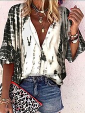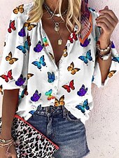 More information about Women's Blouse Long Sleeve Button Down Blouse Graphic Butterfly Tie Dye Bohemia Daily Casual Sleeveless 3/4 Length Sleeve High Neck Regular Tops Buttons Print Black White Summer Spring