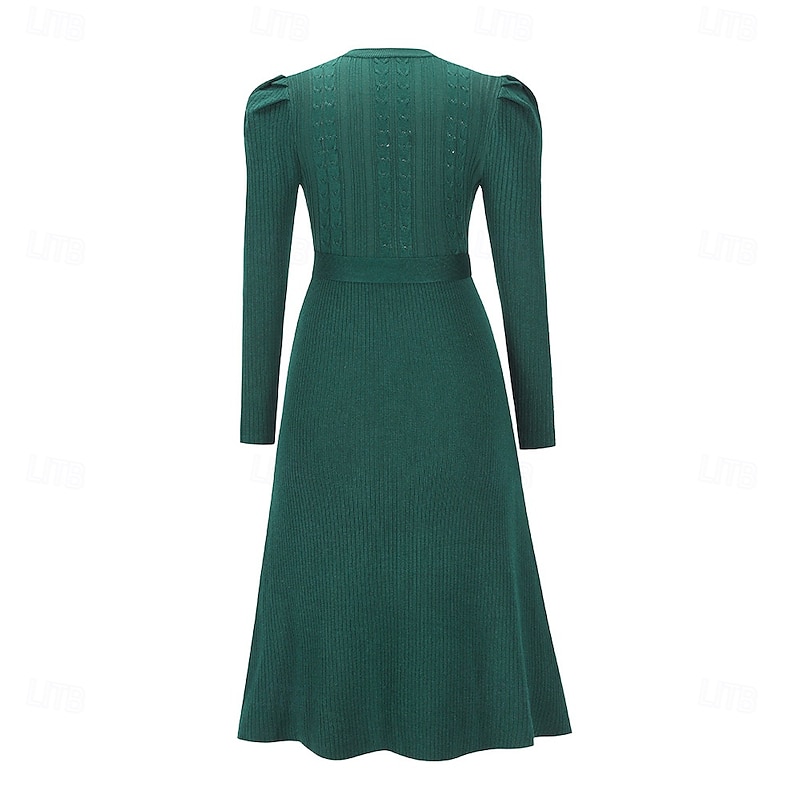 More information about Women's Sweater Dress Fashion Elegant Dress Solid Color Ribbed Crew Neck Knitted Long Sleeve Regular Tops Knit Work Daily Black Green Fall Winter
