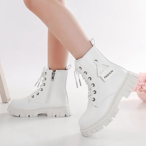 Girls Ankle Lace Up Boots Leather Combat Riding Boots Side Zipper Punk Goth Lug Sole Ankle Booties 4-11 Years Low Calf Boots 7