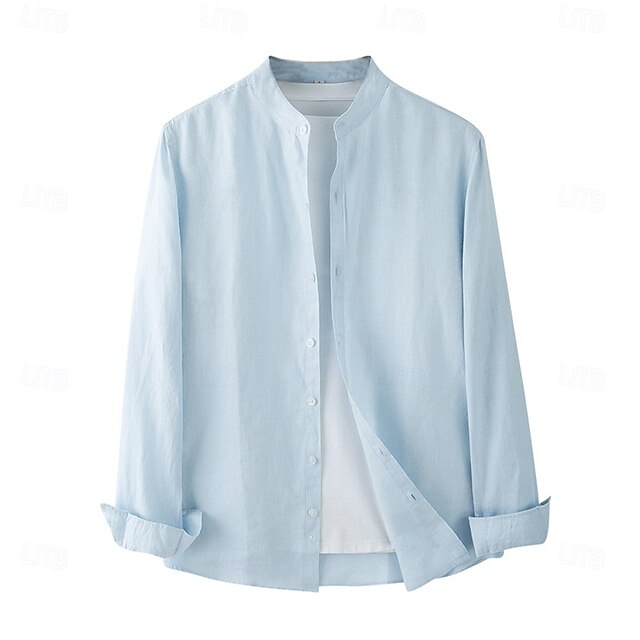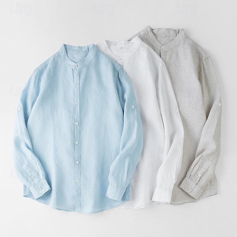 $47.99 - Men's 100% Linen Shirt White Light Grey Light Blue Long Sleeve Solid Color Standing Collar School Formal Buttons Clothing Apparel Elegant Vacation Vintage Neutral 2025. Shop for cheap Men's Elite Shirts online? Buy at lightinthebox.com on sale today!