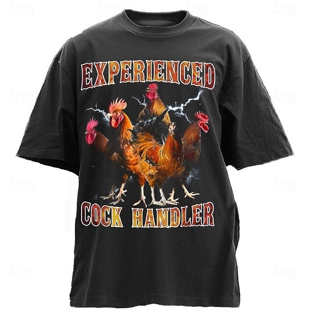 HOT ! Men's Funny Graphic T-Shirt: Experienced Cock Handler Rooster Pun Design Tee