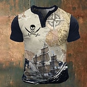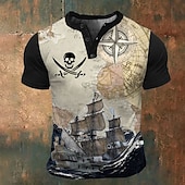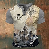More information about Men's Graphic Ship T shirt Henley Shirt Short Sleeve 3D Print Fashion Retro Vintage Classic Sports Outdoor Holiday Going out Spring & Summer Black Brown Dark Blue Gray Henley Henley T-Shirt