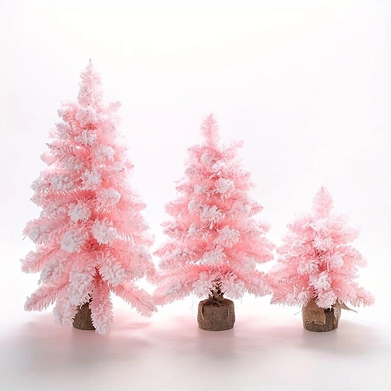 1pc Christmas Flocking Pink Small Tree Decorative Gifts 30cm45cm23.62inch Window Decoration Christmas Tree 1