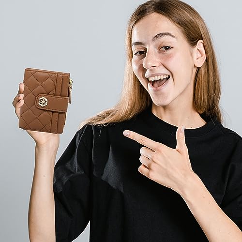 LJCZKA Womens Wallet Card Holder Small Bifold RFID Blocking Purse Short Quilted Leather Pocket for Women Girls Ladies (Brown) 1