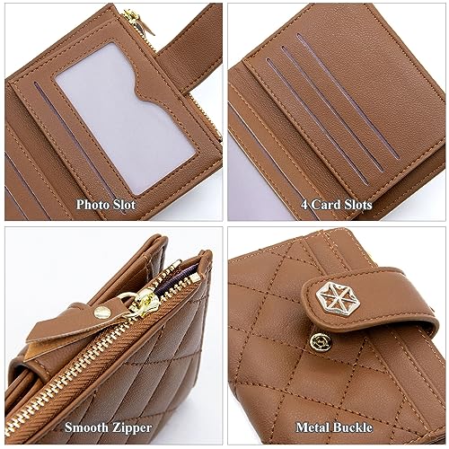 LJCZKA Womens Wallet Card Holder Small Bifold RFID Blocking Purse Short Quilted Leather Pocket for Women Girls Ladies (Brown) 4