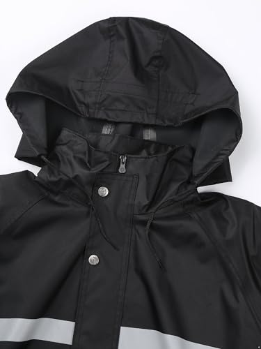 Linjinx Men's Raincoat Waterproof Long Rain Jacket Lightweight Rainwear Reflective Strips with Hooded 3