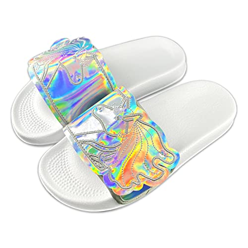 Dream Bridge Girls Sliders Beach Kids Slippers Summer Glitter Sandals Pool Fashion Glitter Shoes Slip On Anti-slip Glossy Rainbow Flip Flops for Boys and Girls Indoor Outdoor,silver,1 UK 5