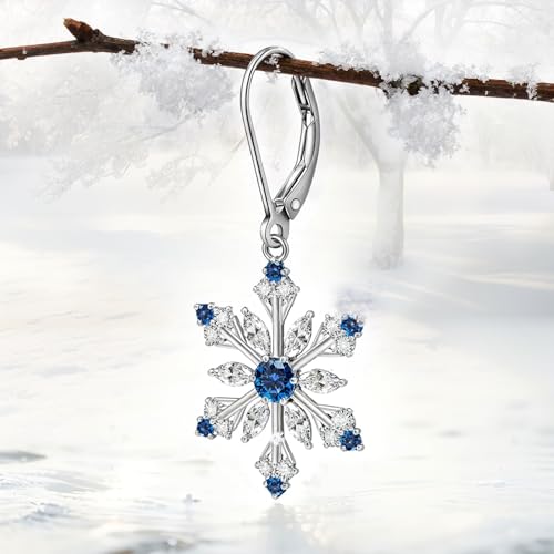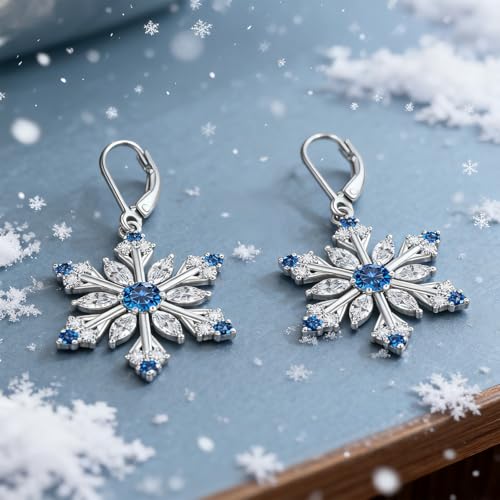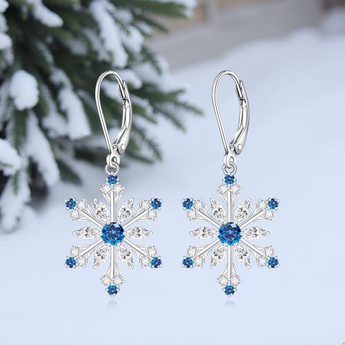 Snowflake Earrings for Women Sterling Silver Christmas Snowflake Earrings Dangle Drop Winter Holiday Jewelry Leverback Christmas Gifts 7