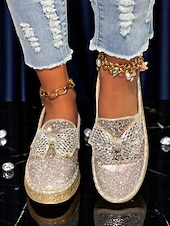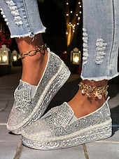 More information about Women's Silver Glitter Platform Slip-On Shoes— Rhinestone Embellished, Cushioned Sole, Party-Ready Sparkle for Night Out, Festivals and Concerts