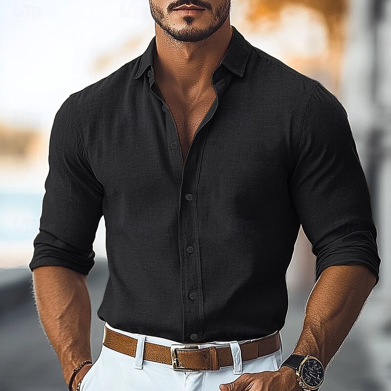More information about Men's Shirt Linen Shirt Summer Shirt Beach Shirt Button Up Shirt Plain Vacation Curise Black Pink Green Light Blue Long Sleeve Collar Spring & Summer All Seasons Clothing Apparel