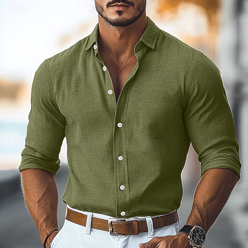 Men's Shirt Linen Shirt Summer Shirt Beach Shirt Button Up Shirt Plain Vacation Curise Black Pink Green Light Blue Long Sleeve Collar Spring & Summer All Seasons Clothing Apparel 13