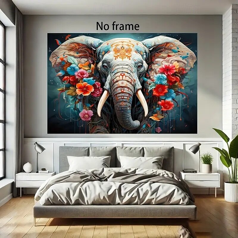 1 frameless modern art elephant animal cute canvas painting suitable for modern canvas posters in living rooms bedroom and living room decorations 1