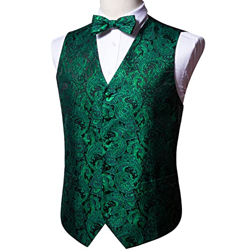 Barry.Wang Men's Waistcoat Bowtie Set Paisley Jacquard Silk V-Neck Vest Handkerchief Cufflinks Formal/Leisure Wedding Party 5