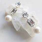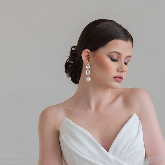 More information about Women's Stud Earrings Geometrical Drop Precious Elegant Fashion Simple Imitation Pearl Imitation Diamond Earrings Jewelry Silver / Gold For Wedding Party Work Daily 1 Pair