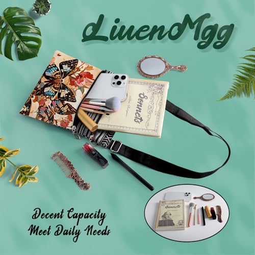 Floral Butterfly Messenger Bag Small Ethnic Pattern Printed Adjustable Strap Crossbody Zipper Bag Floral Butterfly Phone Bag Wallet Cute Shoulder Handbag for Women - 2 6