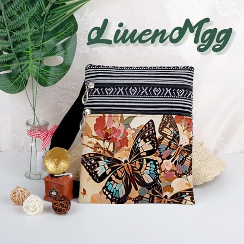 HOT ! Floral Butterfly Messenger Bag Small Ethnic Pattern Printed Adjustable Strap Crossbody Zipper Bag Floral Butterfly Phone Bag Wallet Cute Shoulder Handbag for Women - 2