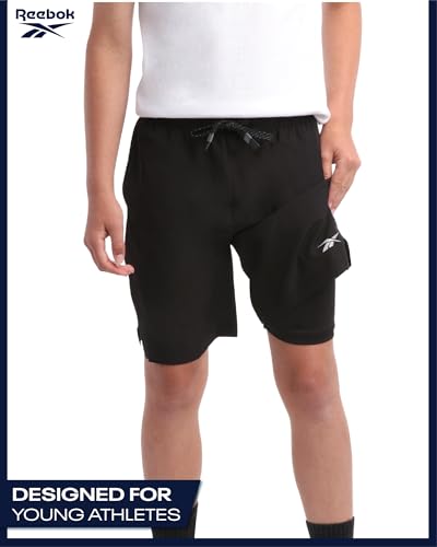 Reebok Boys Shorts - 2 in 1 Basketball Shorts with Compression Liner and Pockets - Gym and Running Boys Athletic Shorts 6