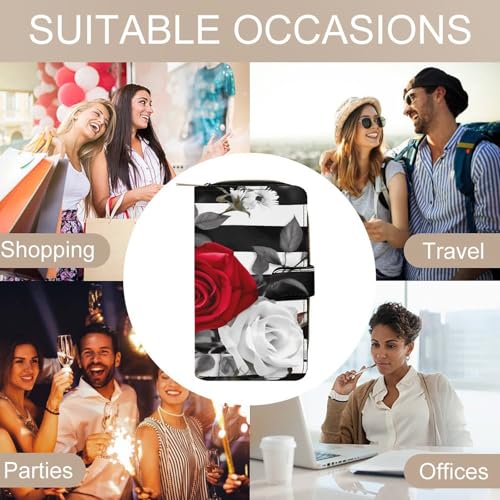 HOT ! PU Leather Wallet, Black Stripes Red Rose Flowers Print Wallet with Multiple Slots Elegant Wallet Convenient Wallet Durable Wallet Modern Wallet