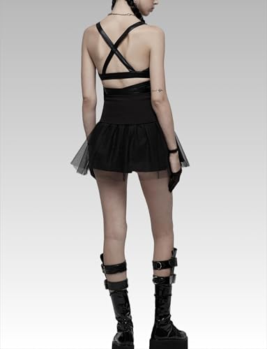 Goth Mini Tulle Lace Skater High Waist A-Line Flared Rave Skirt for Punk Rock Women 5