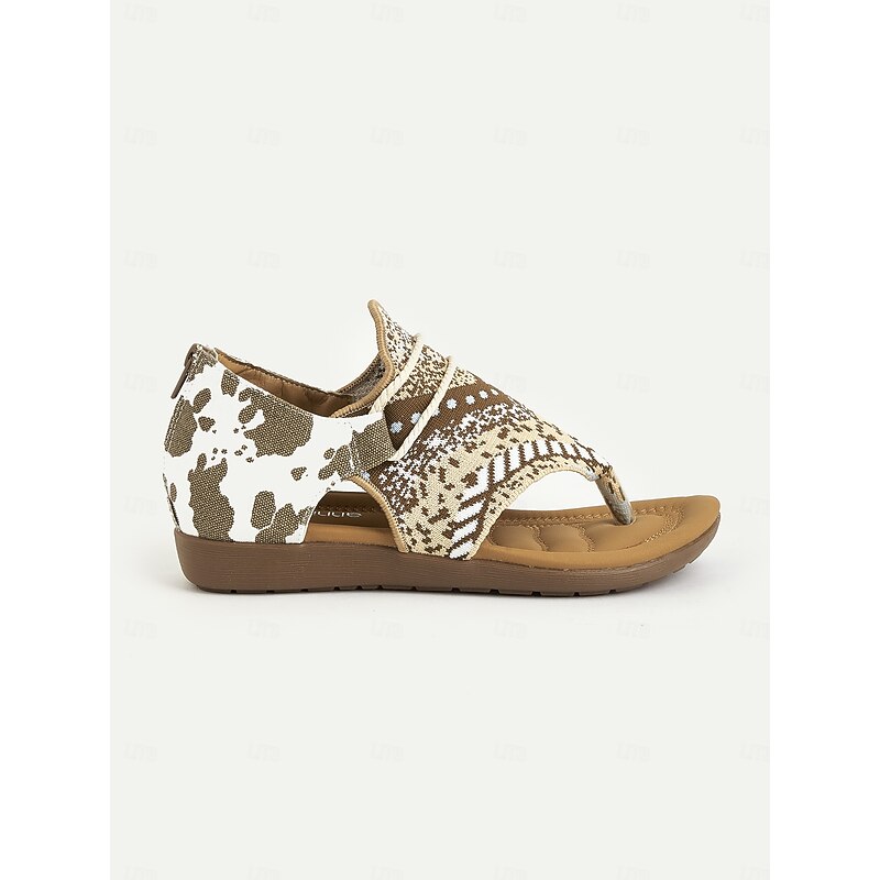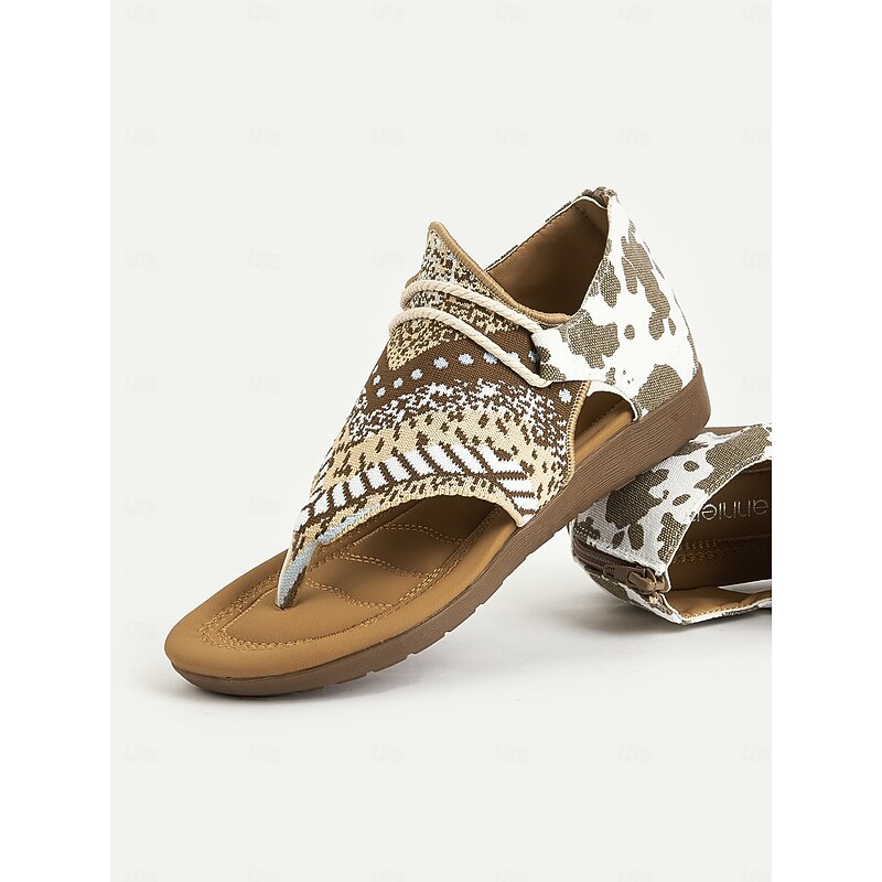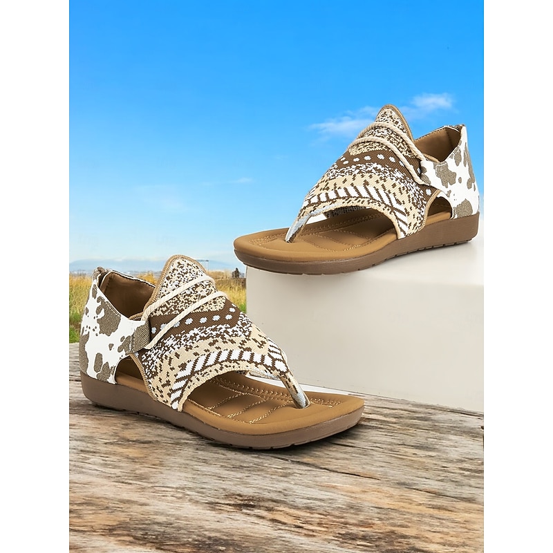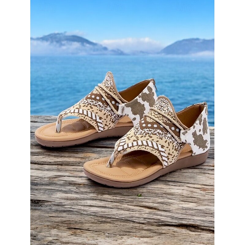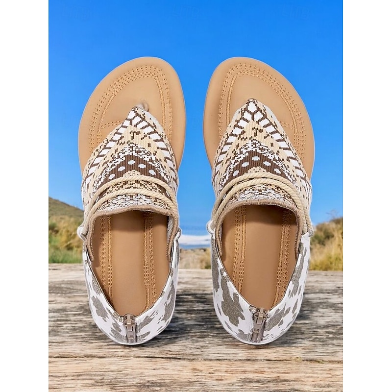 Women's Boho Tribal Print Open Toe Flat Sandals – Casual Ethnic Style Summer Shoes for Beach, Travel, Vacation, and Music Festivals 2